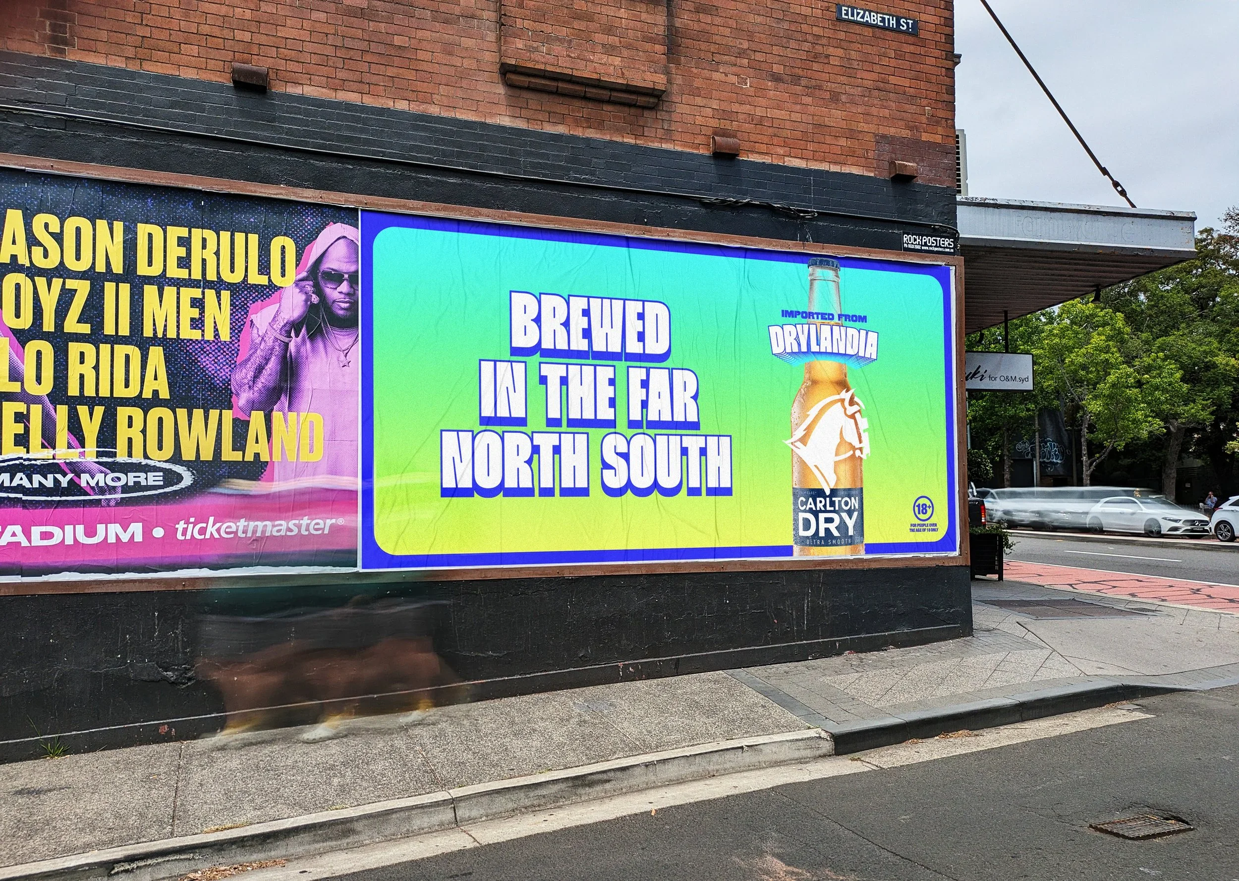 Beer is transportive through provenance. Corona takes you to Mexico, Heineken, Holland, and so on... But Carlton Dry comes from... well... nobody knows.