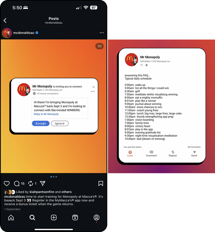 In September of 2024 Wieden + Kennedy asked if we (me and Chris) would help out on a pitch for 20% of the Aussie Macca’s business. We won it in January and they asked if we’d join full time and run the account and some other accounts too. By September of 2025 we had all the above the line work. Here’s a long scrolling page featuring some of what we’ve made…